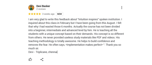 Empowering Tamil Minds Since 2013 Intuition Inspires, spoken english classes in chennai, has been transforming communication skills for 10+ years. Expert training for Tamil professionals, academics, and business owners. Unlock Your Potential Conquer absent-mindedness and forgetfulness with our Concentration Building Courses. Enhance focus, productivity, and success in business and personal life. |